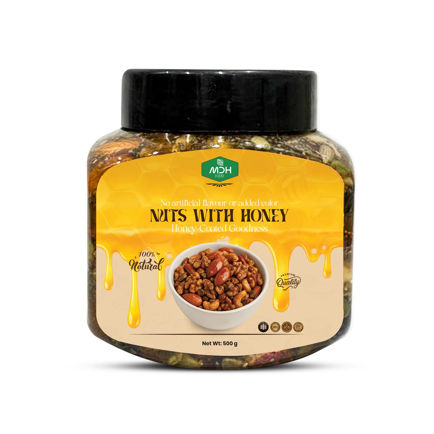 Almonds, Cashews, Pistachios, Honey, and other Roasted Nuts.